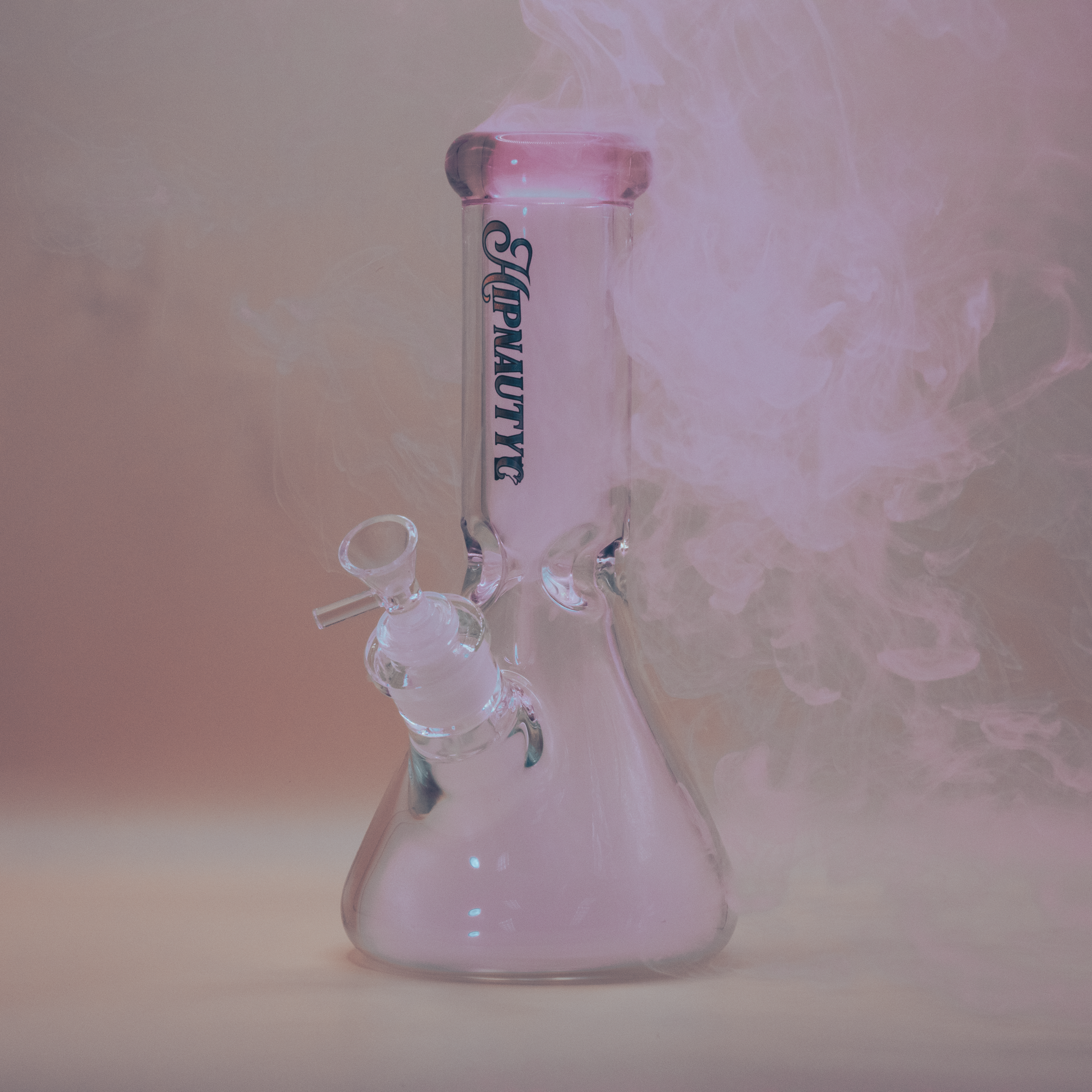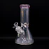 Medium sized, flat beaker water pipe with pink accents and ice catcher. Hipnautyc branded